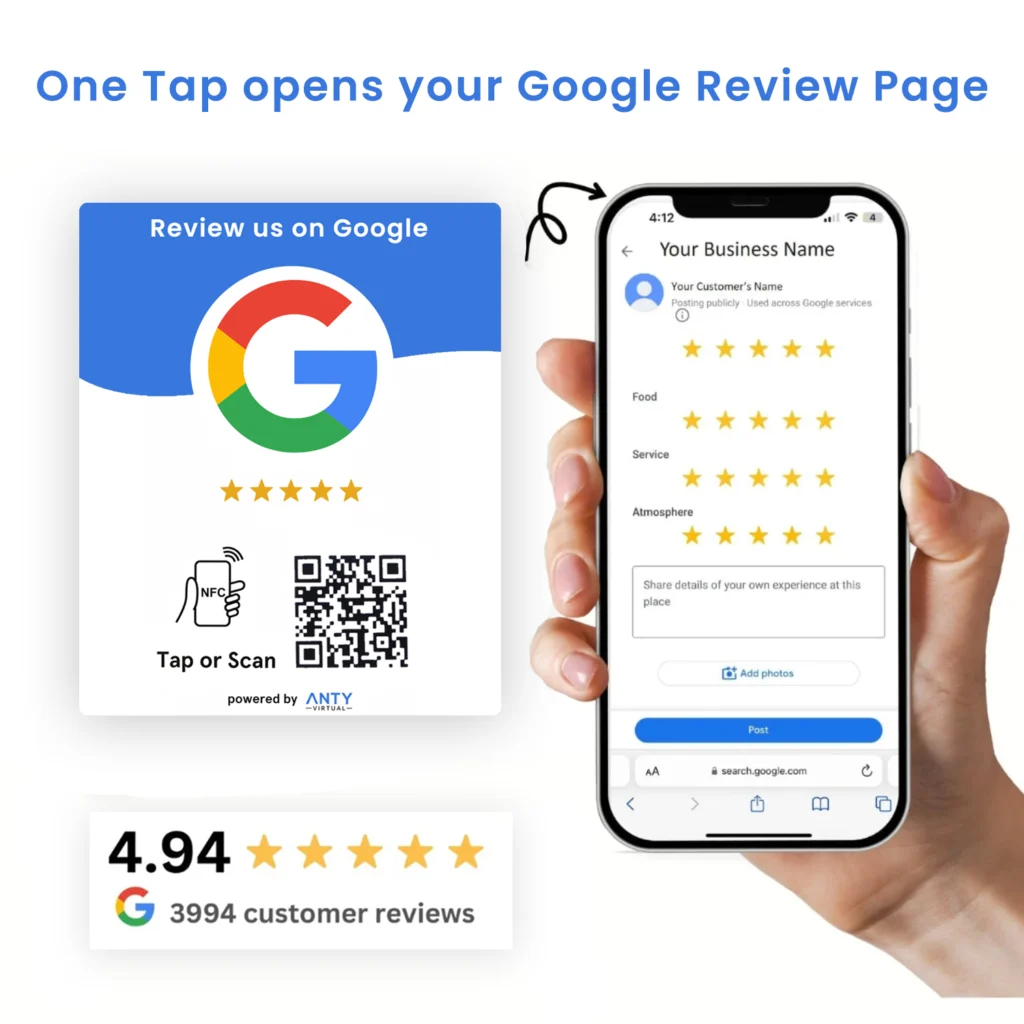 One Tap NFC Review Plate for Business Tap + Scan QR Code (2-in-1)